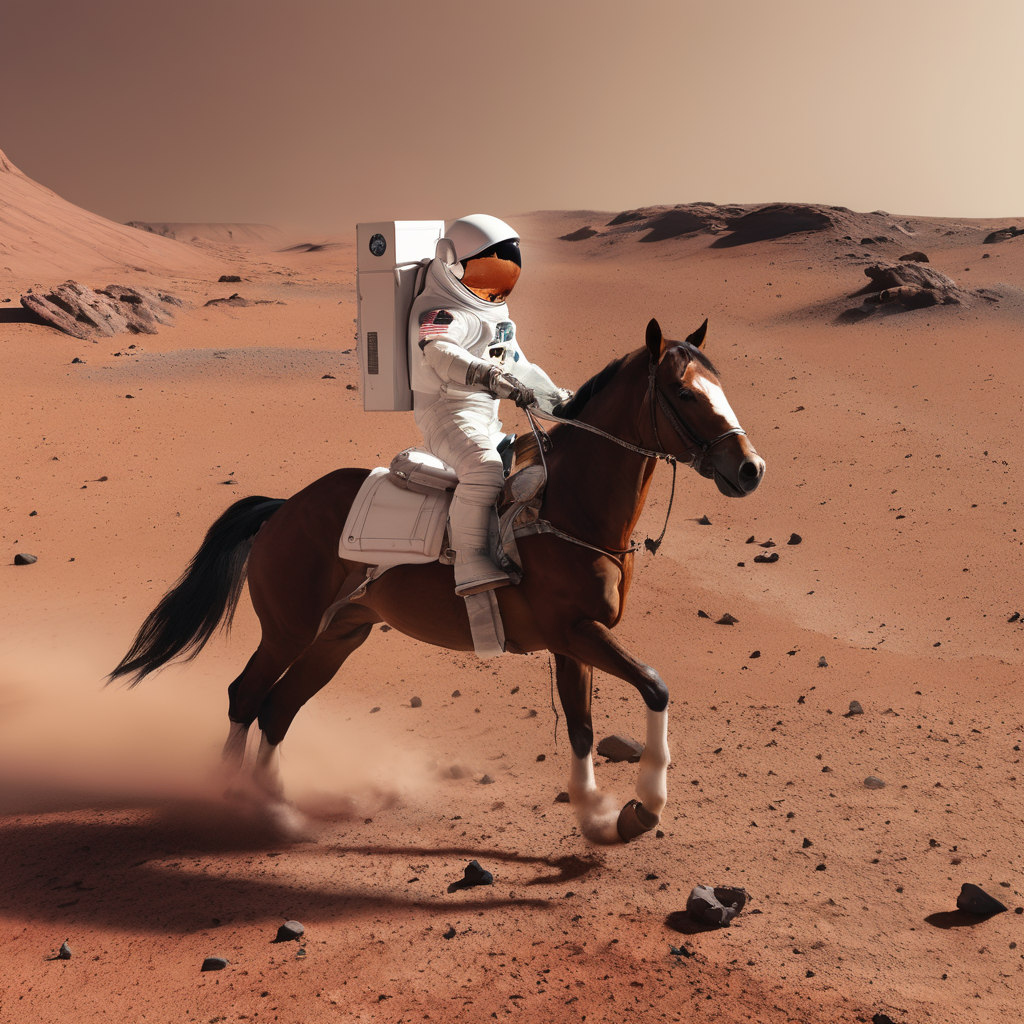 Stable Diffusion is a deep learning model used for converting text to images. It can generate high-quality, variant style images by simply giving a few texts. Let's try on the latest model, Stable Diffusion XL, using the prompt "a photo of an astronaut riding a horse on mars".